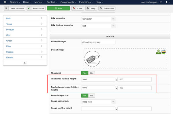 Configuration of Hikashop