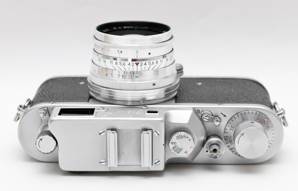 Further improvement of the Zorki 3 resulted in the 3M in 1954. The slow speed knob on the front is now gone with slow and fast speeds now on the top speed selector. This new designed shutter speed mechanism is used in the successors: 3S, 4, and 4K.