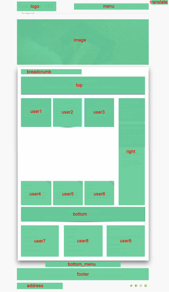 Note : the positions "image" and "video" are special : you must use them only to display a slideshow background (position "image") or a video on the top of the Content box (position "video").